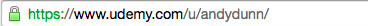 You can find your Udemy username from your profile page’s URL, after the “/u/” part: